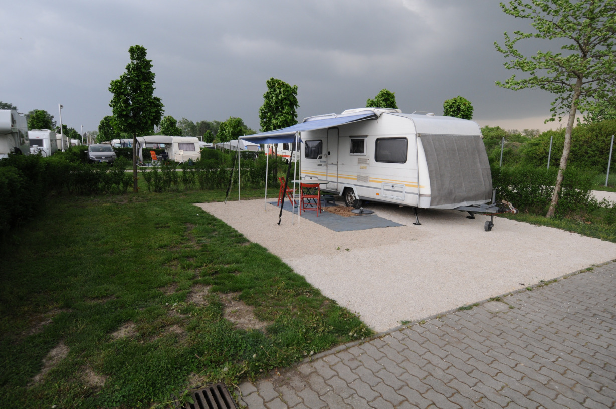 Großparzelle 10x20m Stellfläche mit Kies, Rasen für XXL-Mobile